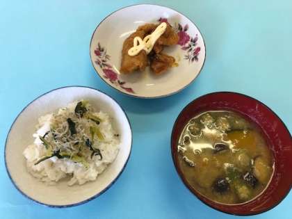 献立は、チキンなんばん、夏野菜のみそ汁、じゃこなっ葉で、おいしく作ることができました。