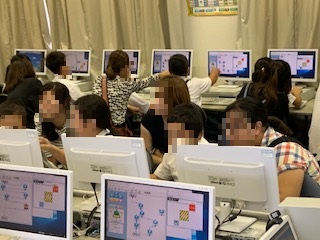 プログラミングソフトを使い、実際にプログラミングを行っていました。子どもたちと同じぐらい保護者の方も集中して取り組んでいました。