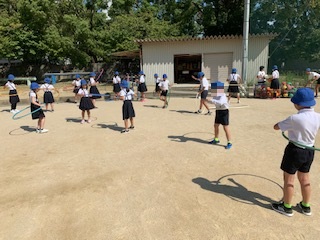 普段使えない体育倉庫の道具を使って、子どもたちはたくさん体を動かし、運動に親しんでいました。