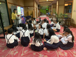 避難訓練です。子ども達にとって初めての場所なので、万が一に備えて経路の確認を行いました。