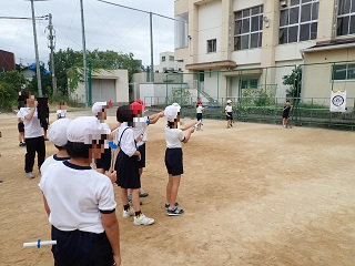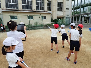 とじこめた水の飛ぶ具合を観察するため、運動場で実験・観察を進めていました。さて、性質のちがい、楽しく学ぶことができたでしょうか。