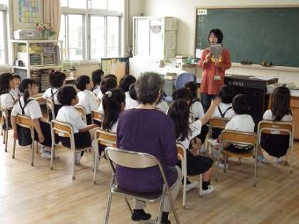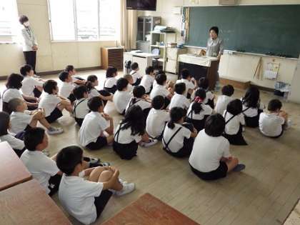 6月6日(木)、東成図書館パンジーお話会の方々に来ていただき、児童たちに本の読み聞かせなどをしていただきました。子どもたちは熱心に聴き入っていました。