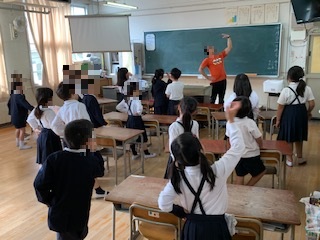 中本小学校では、1年生から外国語に親しめるように外国語の講師を呼び、活動を進めています。