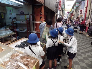社会科の学習で、商店街・スーパーマーケットを見学に行きました。