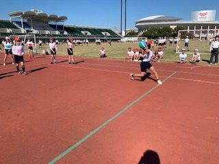 午前中は第2グラウンドでドッジボールとサッカーに取り組み、他校と交流しました。