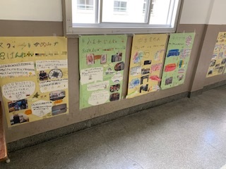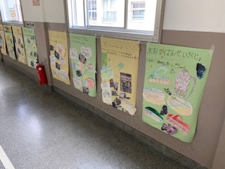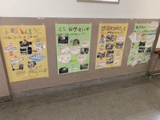 発表会以外でも、グループごとに学んだことをまとめ掲示をしています。写真はタブレット端末を使って自分たちで撮ってきたものを使っています。