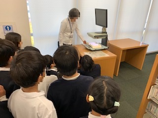 まずは珍しい機械や滅多に入ることができない場所に案内してもらいました。その後図書館の使い方や読み聞かせまでしてもらいました。