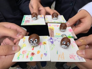 地域のおじいちゃんおばあちゃんへ6年生がお弁当を届けています。合わせて、他学年からプレゼントを持っていきます。今回は1年生が当番です。かわいらしいプレゼントを用意してくれましt。