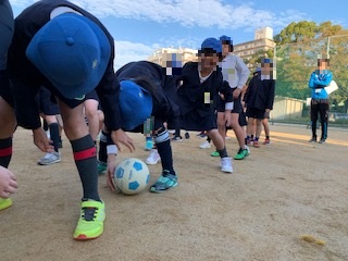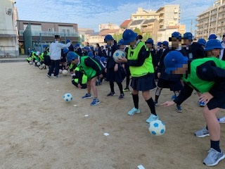 各班ともチームワークよく、ボールをリレーさせていました。
