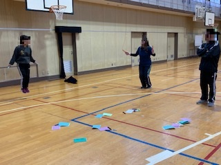 なわとびは、ただ跳ぶだけではあきがでてきてしまうので、さまざまな「技」も合わせて教え、楽しみながら運動できるようにしています。