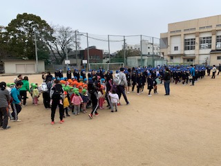 また、中本小学校は広域避難所となっています。近隣の保育園とも連携し、いっしょに避難訓練を行いました。