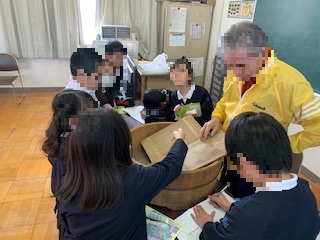地域のおじいちゃん、おばあちゃんに来校していただき、昔のくらしや道具について教えてもらいました。