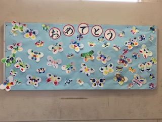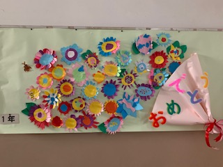 正面玄関や廊下の掲示板に卒業に向けた掲示を作りました。