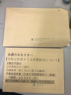 健康観察表・PTA決算総会のご案内等(別封筒)