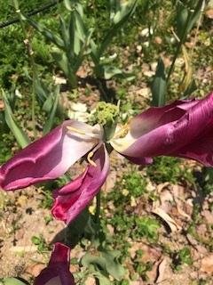 みなさんがそだててきたお花、チューリップですが、さきおわると、花びらが外がわにひらくようですよ。
