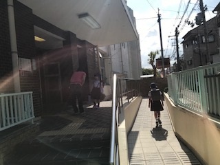 ・玄関ホール前で体温を聞きます。登校前の検温結果をお子様にもお伝えください。