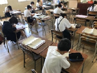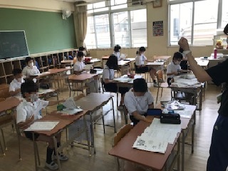 5年生も6年生同様に、テストを受けている場面に出会いました。真剣な表情でテスト用紙を見ている子どもたち。しっかり問題を解くことができたかな??
