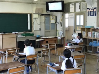 少し時間をおいて、教室をのぞいてみると、動画を見ていました。黒板に貼ったスクリーンに映し出された動画をしっかり見ていました。ICTの活用は今年度も進めていきます。