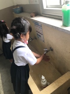 子どもたちは、休み時間に、手洗い場に行き、しっかり手洗いをしています。習慣になってきている子どもたちは自ら行動し、手を洗っています。