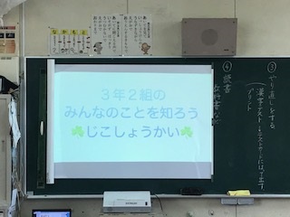 3年2組の前を通ると、黒板に「みんなのことを知ろう」とスクリーンに。登校日はありましたが、前後半に分かれての登校だったため、一斉に集合したのは初めてなんです。