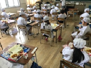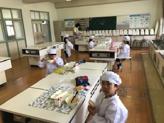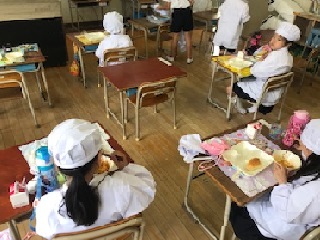 感染リスクを下げるため、机は前を向いたまま、会話も慎みながらの給食となりましたが、1年生、しっかりと給食を食べていました!!