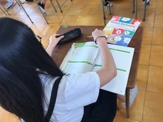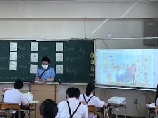 英語の授業がありました。この状況下で、英語の活動において、ハイタッチや対面でのコミュニケーションをとることができない中、hearingやwritingの活動を入れながら授業を進めていきました。また、チャンツなど、リズムや音楽に合わせて英語を覚えていくなど、工夫した活動もしています。