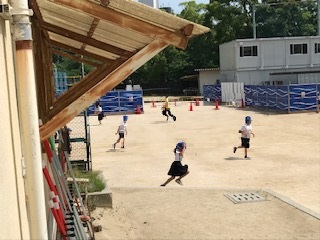 3年生の休み時間。運動場で、鬼ごっこ。
