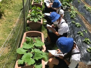 4年生がひょうたんの観察をしていました。