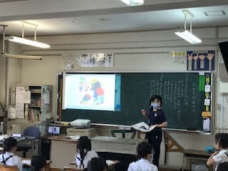 「三びきは友だち」というタイトルのお話を読み、自分の考えを発表したり、友だちの考えを聞いたりします。