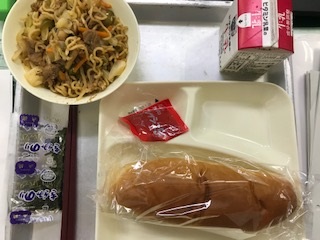今日の給食は「コッペパン・牛乳・焼きそば・いちごジャム」でした。