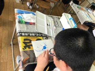 図工の時間に、絵の具を用いて、自分の気持ちを表現する活動をしました。