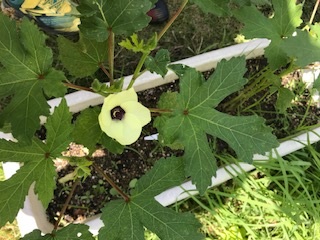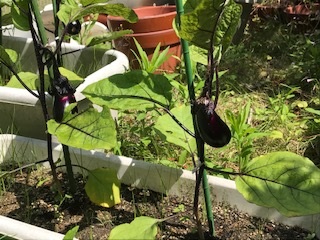 ミニトマトは少し赤くなってきているものがありました。オクラはかわいい花の横で小さな実りが見られました。なすははっきりなすとわかる大きさです。