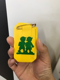 名札は登校・下校の時には、上の画像のようにします。たてにひっくりかえせるようになっています。