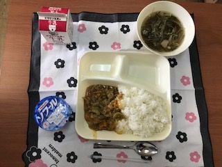 ちなみにメニューは「和風カレー丼・牛乳・もずくとオクラのとろり汁・ヨーグルト」でした。