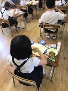 給食が通常の量に戻って3日。なかなか食べきれない子もいますが、少しずつ慣れてもらえたらと思います。