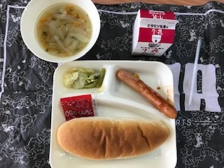 今日の給食「落とさないで、ウインナー」(6月18日)