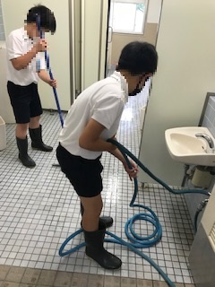 高学年はトイレ清掃の分担があります。トイレ清掃については、教職員が付き添い、清掃の仕方、気を付けること等を指導しながら取り組みます。