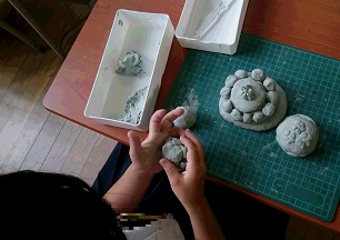 昨日の1年生は、さながらアーティストのように、粘土を使って作品を制作していました。1組は動物園、2組は食べ物をテーマんに作りました。