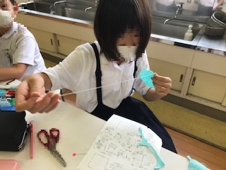 習ってきた縫い方などを駆使し、がんばって作っていました。まだまだ、玉止めや玉結び、針の穴に糸を通すところで苦戦している子もいましたが、一つずつ積み重ねです。がんばりましょう!!