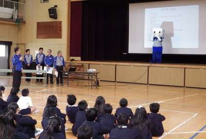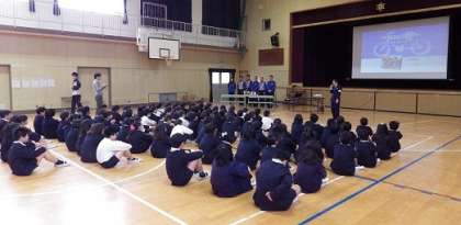 東成警察交通安全課の方と佐川急便の方々に来ていただき、2時限目は4・5・6年生、3時限目は1・2・3年生の全児童対象に交通安全について学習をしました。