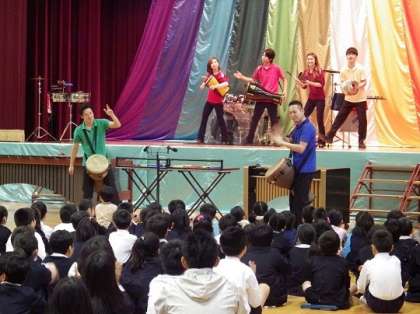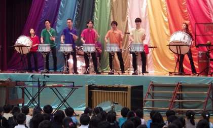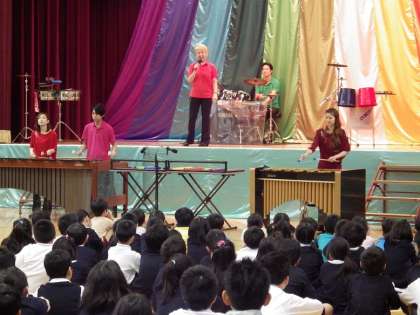 楽しく迫力ある打楽器の演奏に児童たちも聴き入っていました。