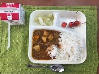 昨日の給食「さくらんぼだー」(6月26日)
