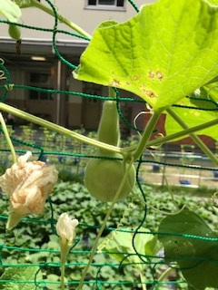 中庭の「ひょうたん・へちま・かぼちゃ」が実りだしました。
