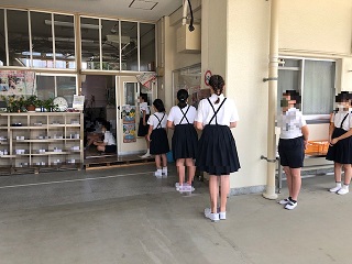 待っている間はもちろん「ディスタンス」を守っています。6年生からの検診でしたが、さすがの6年生は、きっちり「ディスタンス」をとって並んでいました!