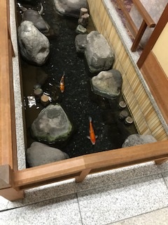 ロビーには鯉が泳いでいます。本当にゆったりできるホテルです。
