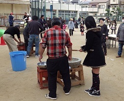 子ども会主催のもちつき大会が地域・PTAの方たちの協力のもと実施されました。