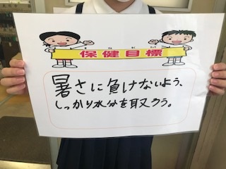 健康委員会の目標は「暑さに負けないようしっかり水分をとろう」です。