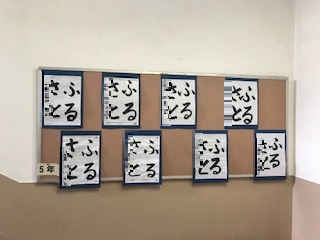 (下)5年生:習字「ふるさと」(毛筆で書き上げた力作です。ひらが