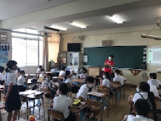 5年生から始まっている英語の学習。これまでの外国語活動と違い、評価をする学習となりますので、テストを行います。今日は、実際に学習した表現方法を用いて、先生と会話のやり取りを行いました。