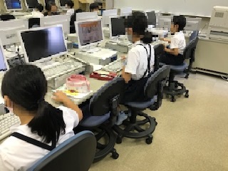パソコン室でそれぞれがテーマに挙げている環境問題に関わる資料を探しました。検索や印刷などで困ったときも支援員さんにヒントをもらいながら、資料を集めることができました。